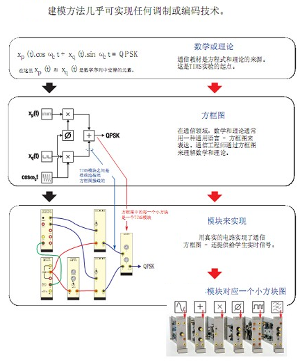 数字通信技术实验系统方案,数字通信技术实验箱,通信原理实验箱,通信系统原理实验室主要设备采用设计型开放式设计理念,跟以往验证型实验设备有本质区别。整个系统采用基于方框图的模块化设计,以数学函数方框图形式来确定硬件基本模块,灵活组合模块以实现任何调制或编码技术。