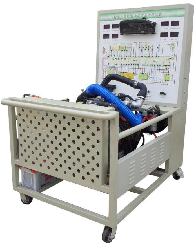 本实训台以长城电控共轨柴油发动机为基础,由主台架、控制台和检测台三部分组成。适用于中高等职业院校和培训机构的汽车发动机构造与维修实训教学,能够满足对电控汽油发动机的结构、工作原理、故障设置及诊断的教学需要。本实验设备操作方便,安全可靠,易于维护。