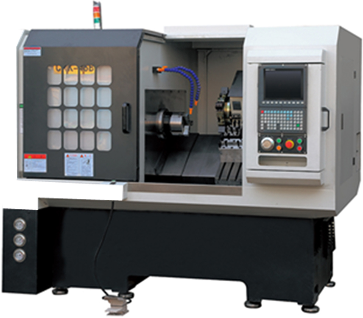 数控车铣复合机床床身采用整体铸造成型,圆筒式筋板结构,床身导轨面与水平倾斜30度布局,具有较大的承载截面,刚性强,吸震性好,不易变形,可保证高精度切削加工。