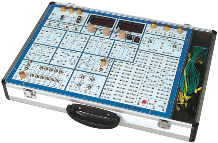 电路原理实验箱主要是进行电工学中的有关电路分析理论的实验论证,属弱电类实验。它采用模块式结构,各模块间相互独立,通过各元件区不同元件组合,可组成多种测试电路,实验模板正面印有电路图,反面装有器件,各实验电路中需测试的点均装有测试孔,使用方便,接触可靠,而且寿命长、效率高,适用于进行各种电路的实验研究,可满足电工原理、电路分析等课程实验教学的需要。有电路原理基本电路。