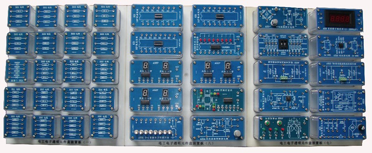 (透明电子元件模块示例图,共9块板,140多只透明有机塑料封闭元件盒)