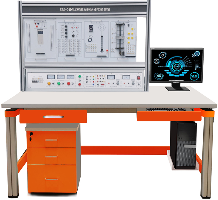 实训桌为工业铝型材结构,桌面为防火、防水、耐磨高密度板;采用电脑桌实训桌一体化设计,实训桌下部设有抽屉柜,左边位双开门柜用于存放实训模块,中间设有两个大抽屉用于放置工具及资料,右边为电脑主机放置柜,电脑主机柜和抽屉上方设有键盘托架,造型美观大方。