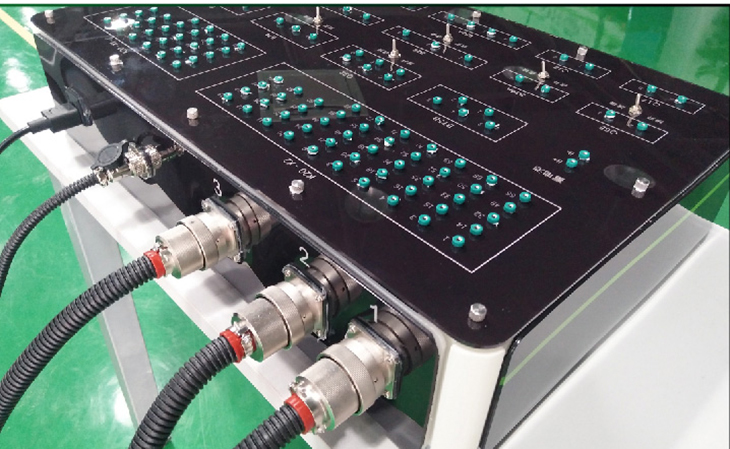 4、机械故障设置终端通过更换面板上不同功能的插件和短路跨接线实现断路、线路虚接、对地短路、对正极短路故障设置,在机械故障设置终端不变的情况下更换不同的连接线束和检测面板可实现不同系统的实训操作;
