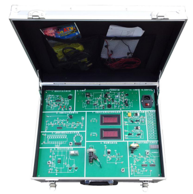 采用便携式箱体、实验箱和附件箱相结合,包括汽车转向灯闪光器实验单元,喷油嘴电路实验单元,.水箱水位过低报警实验单元,LM3914模拟油压显示表实验单元,汽车转速信号测量实验单元,汽车防盗报警电路实验单元,汽车启动电路单元,转向等喇叭电路实验单元等,