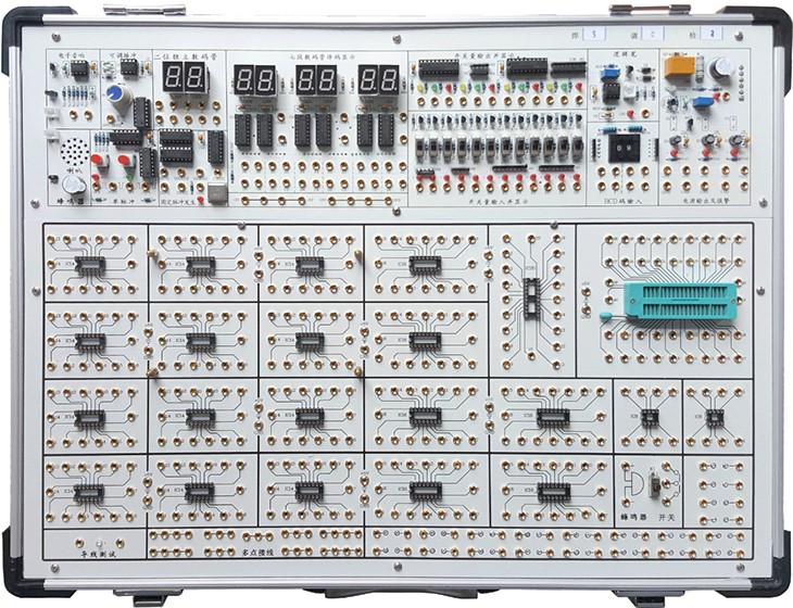 数字电路实验箱,数字电路技术实验箱,《数字电子技术》课程是电子信息工程、电子科学与技术等专业的基础课程,《数字电子技术实验》(即《电子实验》的数字电路部分)是与《数字电子技术》课程相配套的实践教学,也是巩固学生数字电路理论知识所必需的一种教学途径, 它对于促进学生加深理论知识的理解,掌握数字电路实验技术,培训数字电路的创新能力,具有必不可少的作用。