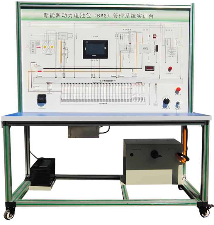 选用新能源车辆磷酸铁锂动力电池包,单体电池(3.2V20AH,共24串),带CAN总线的一体机BMS电池管理系统,有被动均衡功能;真实地呈现了磷酸铁锂动力电池包核心零部件之间的连接控制关系、安装位置和运行参数,以及高压系统安全注意事项,并培养学员对磷酸铁锂动力电池包(BMS)故障分析和处理能力。适用于了解与验证电动汽车的动力电池参数进行实时监控、故障诊断、SOC估算、短路保护、绝缘检测、充放电控制、均衡等功能,并通过CAN总线的方式与带CAN通讯的车载充电机进行信息交互,保障电动汽车高效、可靠、安全运行的BMS教学实训实验。