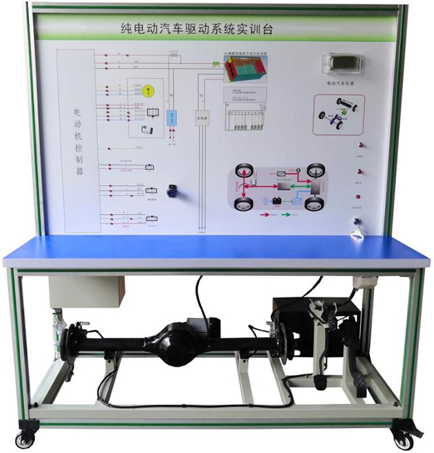 检测控制面板(装有各种检测端子以及彩色电路图)、氢燃料电池及控器、电机与驱动桥总成、电机控制器、点火开关、电子油门、档位装置、电池组与铁电池箱、充电机、DC12V装置、一体化全铝合金型材搭建的移动台架(1500×700×1700mm 带自锁脚轮装置,带安装检测端子的原理面板,面板1448×940mm)、设备操作说明书。