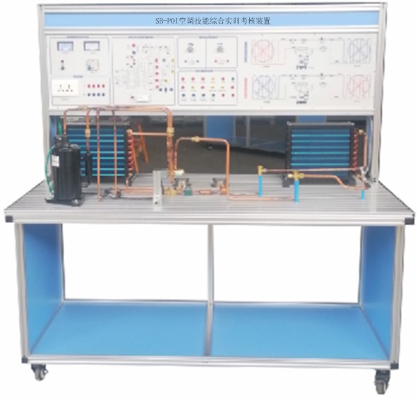 空调控制实训系统、空调技能综合实训考核装置是专门为职业院校制冷类相关专业而研制的实训装置,根据制冷类行业制冷维修技术的特点,针对空调的电气控制以及制冷系统的安装与维修进行设计,强化了学生对空调冰箱系统管路的安装、电气接线、工况调试、故障诊断与维修等综合职业能力。装置融合了流体力学、热力学、传热学和电气控制等技术,集制冷空调系统安装、制冷系统电气接线、压力检漏、抽真空、充注制冷剂与运行调试于一体,包含了制冷系统维修的全部步骤,能满足实训教学、实际工程训练及职业技能竞赛的需要。
