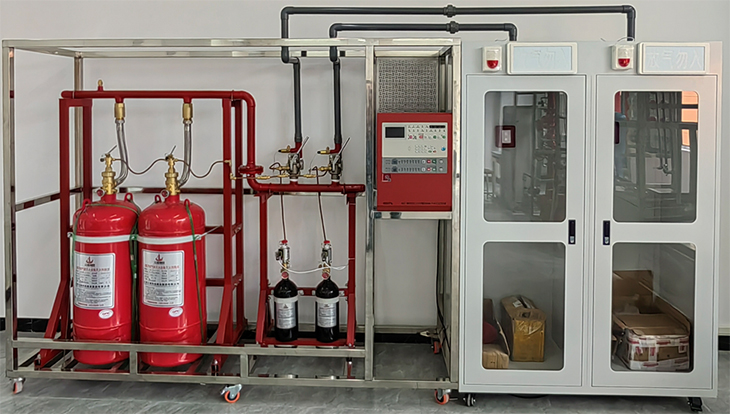 整个运作系统储气瓶采用空瓶安装,系统运作采用模拟气源防真灭火。并配配有相应探测器与联动控制主机。
