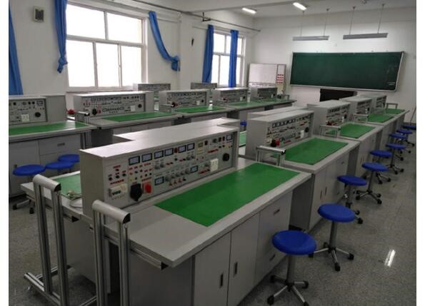 电工实验台具有较完善的安全保护措施,较齐全的功能。实验桌中央配有通用电路板,电路板注塑而成,表面布有九孔成一组相互联通的插孔,元件盒在其上任意拼插成实验电路,元件盒盒体透明,直观性好,盒盖印有永不褪色元件符号,线条清晰美观。盒体与盒盖采用较科学的压卡式结构,维修拆装方便。元器件放置在实验桌下边左右柜内,大大提高了管理水平,规划化程度,大大减轻了教师实验准备工作。