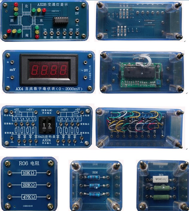 (透明电子元件模块示例图,共9块板,140多只透明有机塑料封闭元件盒)