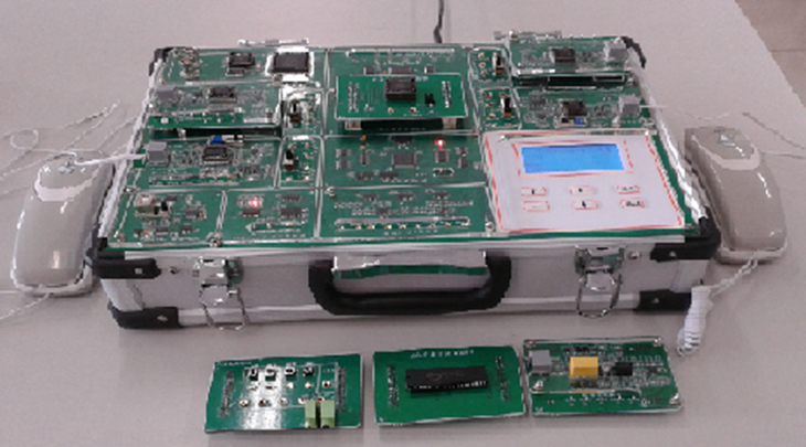 8、数字交换网络中,可通过键盘输入、手动连线等多种方式分配调整各路电话用户的收发时隙,辅助实验人员理解时分概念。