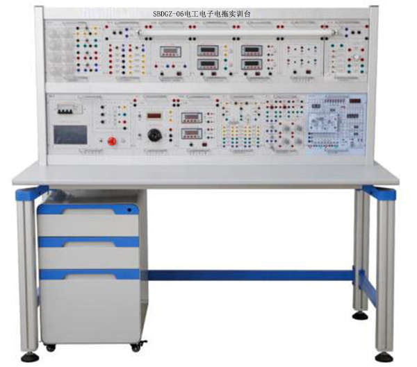 电工电子电拖实训台由实验桌、实验台架、存储柜、实验挂箱组件、配件等组成。