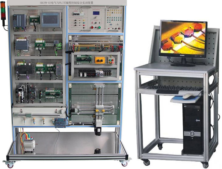 电气与PLC可编程控制综合实验平台采用铝型材框架(立式),在框架的下面装设了四只带刹车的万向滑轮,便于实验装置固定和移动,利于实验使用及建设。外形尺寸:≥ H2000*W800*D800。框架中间安装有网孔板用于安装器件,要求网孔板采用优质冷轧钢板加工,双表面亚光密纹喷塑而成。配套电脑桌:铝木结构,型材框架,20mm贴面防火板圆边后成型面板,钣金防护后背,规格≥ 580*450*960mm。