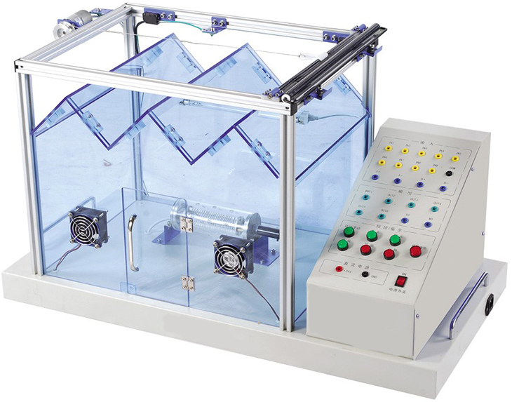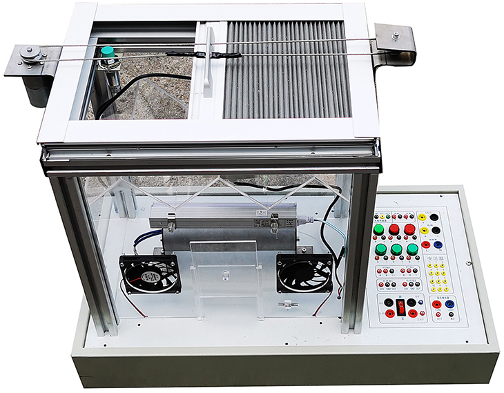 智能温室控制实训装置主要由温度设定、风机变速和上位机软件控制等几部分组成。温度的控制过程是将温度检测传感器采集的内、外部环境温度与设定温度值进行比较,PLC模拟量模块根据温差值输出模拟量来控制加热器电压从而控制加热的快慢,根据温差值给出风机相应信号来切换风机的高速、低速、停止三种运行模式。光照控制是根据温差值及内外光照信号来控制遮阳网的动作。整个实训过程既可以通过上位机软件进行控制和实时监控又可进行手动控制。能开展对智能温室的维护、设备操作及控制等技能训练,适合农业自动化等课程的实训教学。