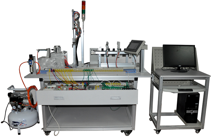 光机光机电气一体化控制实训系统是各大、中专院校、高职高专院校的 教学、考核实训装置,广泛用于教学实训、课程设计和毕业设计。 目前各种光、机、电、气实训装置,电气一体化实训装置由铝合金导轨式实训台、典型的机电一体化设备的机械部件、PLC模块、变频器模块、按钮模块、电源模块、模拟生产设备实训模块、接线端子排和各种传感器、计算机等组成。整体结构采用开放式和拆装式,实训装置用于机械部件组装,可根据现有的机械部件组装生产设备,也可添加机械部件组装其他生产设备,使整个装置能够灵活的按教学或竞赛要求组装具有生产功能的机电一体化设备。模块采用标准结构和抽屉式模块放置架,互换性强;同时还要求具有可拓展功能,可以组成更加大型的生产模拟系统,以配合各个用户学校不同层次,不同专业的教学及培训要求。