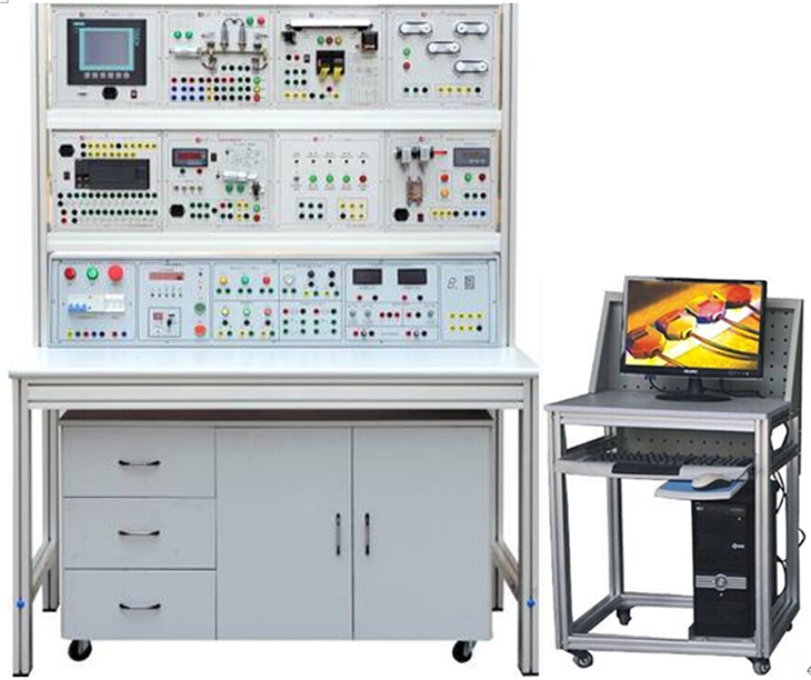 可编程控制器(PLC)实训设备是一种专门为在工业环境下应用而设计的数字运算操作的电子装置。它具有功能强大、适应面广、编程方便、工作可靠、抗干扰能力强、外接线路极少以及体积微小等优点。除已完全取代了复杂庞大的继电器逻辑控制系统外,现在PLC已发展成工业控制的主要支柱,广泛应用于工业控制中的各个领域。PLC实验室现已成为本科毕业设计及教师的实验和科研基地。