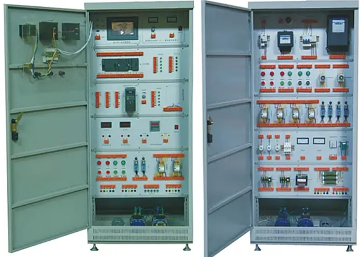 提供三相断路器,二相断路器,二相电能表、三相电能表、互感器、熔断器(5A)、交流接触器、热继电器、数字式时间继电器、速度继电器、按钮开关(常开、常闭)、急停按钮、行程开关、能耗制动变压器、整流桥、能耗制动电阻、大功率电阻、信号指示灯(红、绿、白、黑)、万能转换开关、选择按钮、交流电压表、交流电流表、功率因数表等。