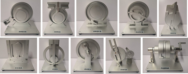 模型壳体、转动件均采用铝合金精加工制作、表面打磨,进行喷砂氧化处理;所有联接件均采用标准化生产,需要观察内部机构运动的模型表面装饰有透明有机玻璃,销轴连接,产品耐磨性好、转动灵活,拆装方便,经久耐用、美观大方。