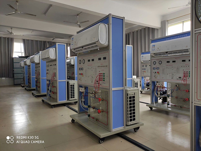 5、设有电流型漏电保护装置;并有热保护器件,对压缩机进行过热、过载保护;实训强电连接导线及插座采用手枪插式全封闭结构,使用方便、可靠、防触电