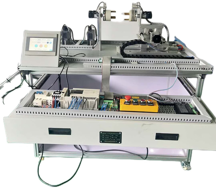 PLC步进伺服控制综合实训平台,它集二轴定位模型、PLC、步进运动控制系统、伺服运动控制系统、人机界面、传感器等技术于一体的实训教学装置,适合机电一体化、电气工程、自动化等专业实训教学、课程设计、毕业设计。