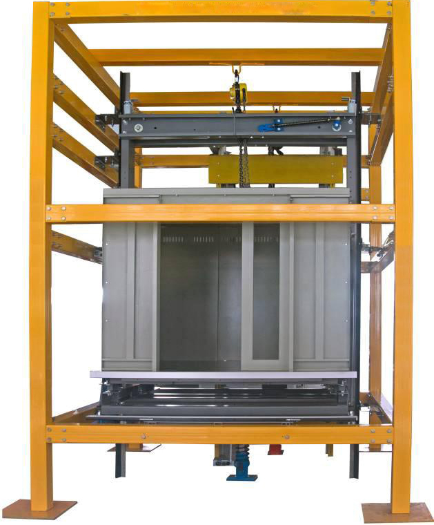 5.采用了手动葫芦拖动轿厢架和对重架在导轨上的运动,使演示与调试更加方便。