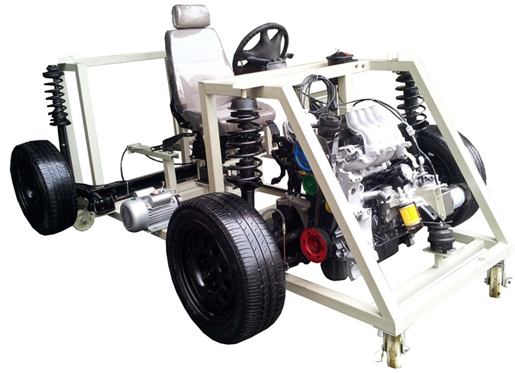 1.安装真实的汽车底盘各系统(包含前后悬挂系、转向系、传动系、手动变速器及挂档机构、制动系),充分展示汽车底盘各系统的组成结构。
