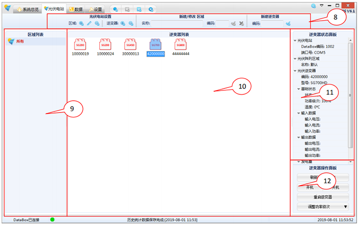⑥显示光伏发电系统的 各种工作状态,包括:蓄电池(组)电压、负载状态、电池方阵工作状态、辅助电源状态、 环境温度状态、故障报警等。