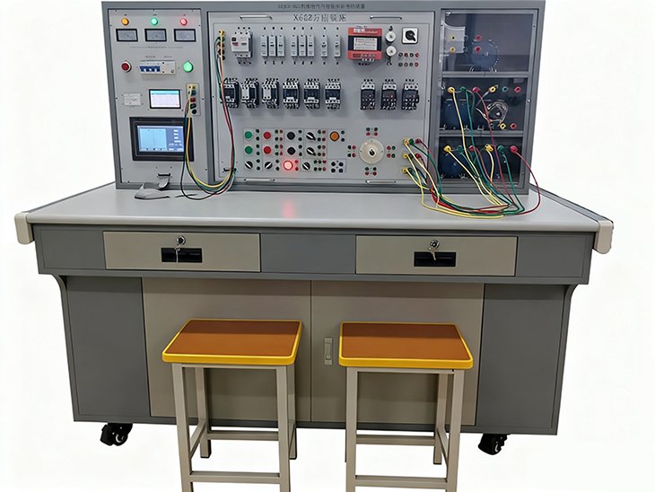 装置主要有实训屏、实训机床电路挂箱、实训桌等组成。
