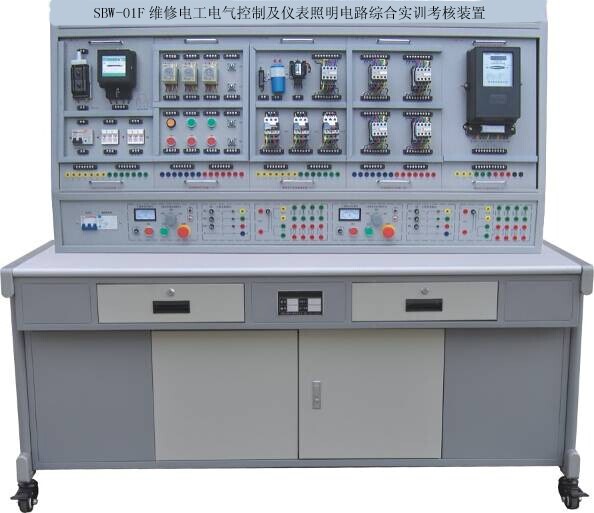 维修电工电气控制及仪表照明电路综合实训考核设备"电气控制及仪表照明电路实训考核装置"是根据劳动和社会保障部颁发的维修电工初、中级技能考核内容所列出的实训线路而研发的实训装置,通过本实训装置的实训操作,快速掌握该课程的实际应用技术与操作技能,该实训装置不仅可供学生进行技能实训,也是大中专院校、技校、职校及劳动职业技能鉴定部门初级、中级维修电工技能考核的理想设备。
